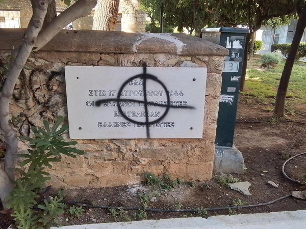 Σήμερα λοιπόν, λίγες ημέρες μετά τα 80 χρόνια από τη θυσία των πατριωτών και συμπολιτών μας από τους Ναζί και τους Χίτες, κάποιοι βεβήλωσαν τη μνήμη τους.