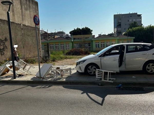Καβάλησε το πεζοδρόμιο και πήρε παραμάζωμα τα τραπεζοκαθίσματα καταστήματος εστίασης. Ευτυχώς στο διάβα του δεν βρέθηκε άνθρωπος, ούτε καθόταν κάποιος στον εξωτερικό χώρο του μαγαζιού.