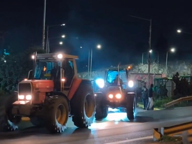 Μια πρώτη εικόνα δείχνει δεκάδες τρακτέρ να κινούνται με πομπή προς την είσοδο και να παρατάσσονται αποκλείοντας την πρόσβαση.