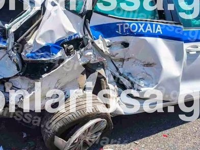 Πολύ σοβαρό τροχαίο σημειώθηκε στη Λάρισα, στην Εθνική Οδό, στο ύψος των διοδίων Μακρυχωρίου, όταν ένα αγροτικό έπεσε με μεγάλη ταχύτητα πάνω σε περιπολικό στο οποίο επέβαιναν δύο αστυνομικοί. Οι άτυχοι ένστολοι σώθηκαν επειδή φορούσαν ζώνη.