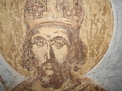 Στην τοιχογραφία απεικονίζεται η μορφή ενός ώριμου άνδρα που φέρει αυτοκρατορικά «διάσημα»(πολυτελή λώρο πάνω από τον ανοιχτόχρωμο σάκκο, διάλιθο στέμμα) και κρατά σταυροφόρο σκήπτρο.