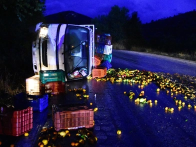 Ένα αγροτικό αυτοκίνητο που μετέφερε πορτοκάλια ανατράπηκε το απόγευμα της Τρίτης (28/11) στην Π.Ε.Ο. Κορίνθου - Άργους στο ύψος των Δερβενακίων.
