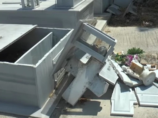 Ο δυνατός αέρας που έπνεε στην περιοχή είχε σαν αποτέλεσμα να καταστραφούν πολλά μνήματα, σύμφωνα με το epiloges.tv.