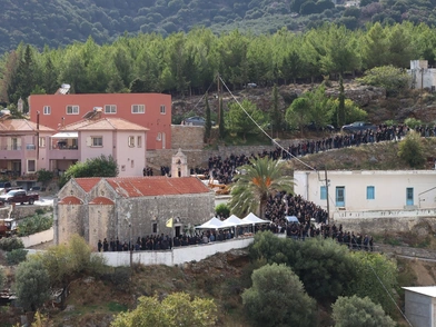 Κατά τη μεταφορά της σορού από το σπίτι προς την εκκλησία, η πομπή σταμάτησε για λίγο στο σημείο όπου εκτυλίχθηκε το μακελειό, με μέλη της οικογένειας του 39χρονου να ξεσπούν σε λυγμούς και φωνές.
