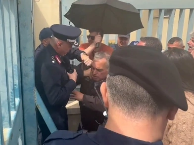 Μικρή ένταση προκλήθηκε σήμερα (15/4) κατά τη συγκέντρωση των οδηγών και ιδιοκτητών ταξί έξω από το υπουργείο Υποδομών και Μεταφορών όπου είχαν συγκεντρωθεί.