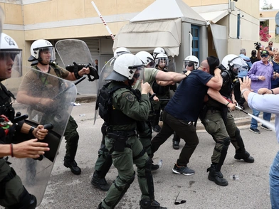 Ωστόσο βρήκαν την κεντρική είσοδο κλειστή και κινήθηκαν προς άλλη είσοδο, προκειμένου να μπουν στον χώρο και να συναντήσουν την ηγεσία. Στη συνέχεια, διμοιρία των ΜΑΤ έριξε χημικά και επιτέθηκε με γκλοπ στους απεργούς οδηγούς ταξί.