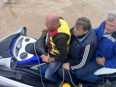 Στα Μεγάλα Καλύβια Τρικάλων, το νερό έφτασε σε μεγάλο ύψος, με αποτέλεσμα ένας άνδρας να απεγκλωβίσει εξαμελή οικογένεια με τη βοήθεια ενός jet ski!