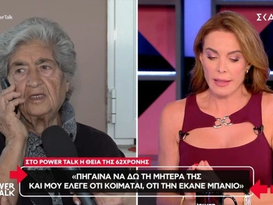 Η γυναίκα βγήκε σε «παράθυρο» να μιλήσει για την 62χρονη στη Βοιωτία που έθαψε τη μητέρα της για να λαμβάνει τα επιδόματα και τη σύνταξή της. Όταν τελείωσε αυτά που είχε να πει και άκουσε την Τατιάνα Στεφανίδου να την ευχαριστεί, η γυναίκα είπε χαμογελώντας: «Έχω ζητήσει ένα περιδέραιο».