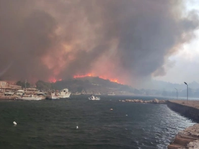 Ανεξέλεγκτη είναι η κατάσταση στη Χίο με τη φωτιά να μαίνεται και να καίει τα Λιμνιά.