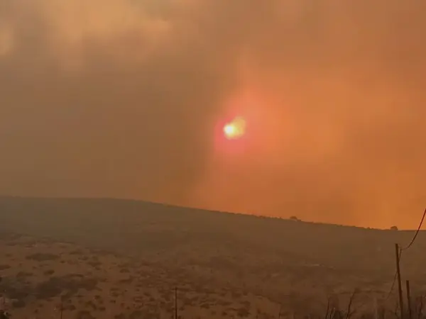 Σε βίντεο του Orange Press Agency διακρίνονται οι καπνοί να έχουν σκεπάσει τα πάντα, την ώρα που οι πυροσβέστες δίνουν μάχη με τις αναζωπυρώσεις, προσπαθώντας να οριοθετήσουν τα τρία μέτωπα.