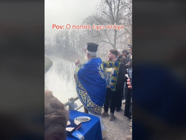 Τον γύρο του TikTok, με περισσότερα από 50.000 like, κάνει ένα σημερινό βίντεο από τα Τρίκαλα, όπου κατά τη διάρκεια εορτασμού των Θεοφανίων, ένας ιερέας έριξε κατά λάθος τον Σταυρό στο κεφάλι πιστού.