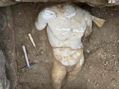 Το άγαλμα εντοπίστηκε στο πλαίσιο επίβλεψης έργου τοποθέτησης δικτύου φυσικού αερίου, εντός σκάμματος πλάτους ενός μόλις μέτρου, όπως αναφέρει το υπουργείο Πολιτισμού. Το έργο ήταν τοποθετημένο εντός κατασκευής κτισμένης από ορθογώνιες πλίνθους και βρέθηκε σε αρκετά καλή κατάσταση.
