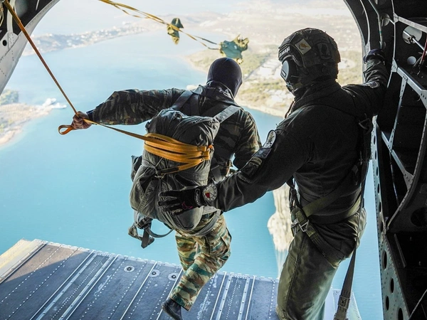 Από ελικόπτερο Chinook έπεσε με αλεξίπτωτο ο Αρχηγός ΓΕΕΘΑ Στρατηγός Δημήτριος Χούπης.