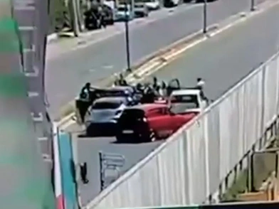 Ένα άλλο όχημα μπαίνει μπροστά του και ελαττώνει ταχύτητα, ενώ στη συνέχεια και άλλα οχήματα περικυκλώνουν το αυτοκίνητο του κακοποιού.
