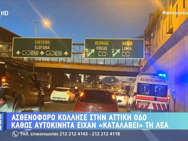 Το ασθενοφόρο, σύμφωνα με πληροφορίες του Alpha, κινούνταν στην Αττική Οδό, στο ρεύμα προς Ελευσίνα, και αναγκάστηκε να καθυστερήσει να μεταβεί στο συμβάν λόγω του μποτιλιάρισματος στη ΛΕΑ.