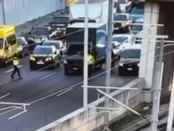 Στα πλάνα αρχικά ο οδηγός φαίνεται να έχει σταματήσει και κατέβει από τη μηχανή, ωστόσο στη συνέχεια την καβαλάει και ανοίγει γκάζι με αποτέλεσμα να παρασύρει τον έναν από τους δύο τροχονόμους που βρίσκονταν μπροστά του.