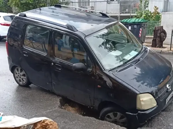 Στην περιοχή του Αγίου Ελευθερίου, ένα αυτοκίνητο έπεσε με το μπροστινό του μέρος μέσα σε μία μεγάλη τρύπα που είχε ανοίξει στο οδόστρωμα.