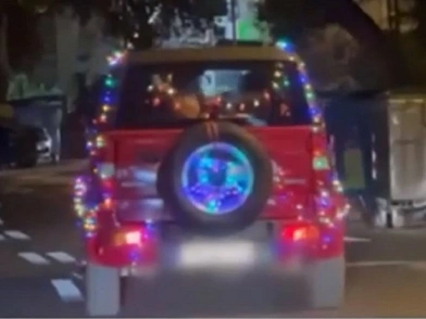 Κι αυτό γιατί ο ιδιοκτήτης του το έχει «λούσει» με πολύχρωμα λαμπιόνια, από το παρμπρίζ και το καπό μέχρι και στη ρεζέρβα, κάνοντάς το να φωτίζει τους δρόμους και να βάζει οδηγούς αλλά και περαστικούς σε κλίμα Χριστουγέννων.