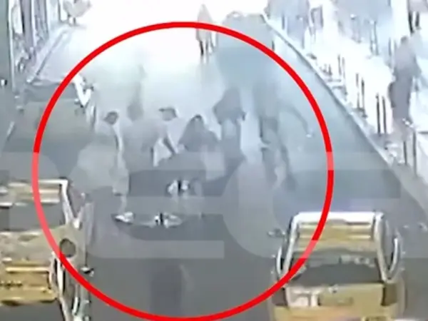 Στα πλάνα φαίνεται ο κόσμος που πετάγεται έξω όταν το όπλο σηκώθηκε και ο πανικός μόλις ακούστηκαν πυροβολισμοί.