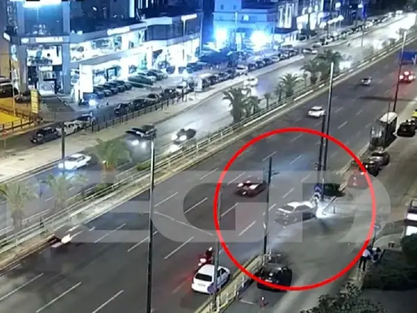 Στα πλάνα διακρίνεται ένα λευκό αυτοκίνητο να κινείται στη Λεωφόρο Συγγρού λίγο πριν στρίψει στον παράδρομο στο ύψος της Αμφιθέας.