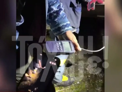 Στο βίντεο το μηχάνημα που κρατούν στα χέρια τους οι άνδρες της Πυροσβεστικής αρχίζει να χτυπά ασταμάτητα.
