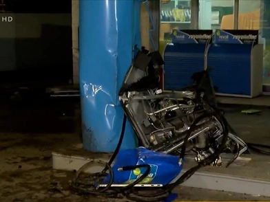 Σύμφωνα με την ΕΡΤ, το τζιπ «ξήλωσε» τρεις αντλίες βενζίνης και η ανεξέλεγκτη πορεία του σταμάτησε στις κολόνες του στεγάστρου.