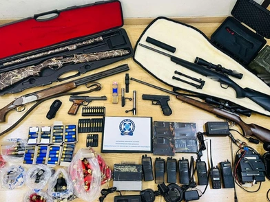 Ειδικότερα στο σπίτι του 61χρονου βρέθηκαν και κατασχέθηκαν 4 τυφέκια, 2 πιστόλια, πλήθος φυσιγγίων διαφόρων διαμετρημάτων, 3 διόπτρες, σιγαστήρας και 9 φορητοί ασύρματοι πομποδέκτες, για τα οποία οι Σουηδικές Αρχές είχαν ανακαλέσει την άδεια κατοχής του, καθότι θεωρούνταν ύποπτος για τέλεση αδικημάτων.