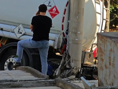 Σύμφωνα με αυτόπτες που επικαλείται το Orange Press Agency, στο σημείο ο δρόμος είναι ανηφορικός και το φορτηγό «κόλλησε» με συνέπεια να συρθεί πίσω και να πέσει στην κολώνα, την οποία σχεδόν έσπασε στη βάση της.