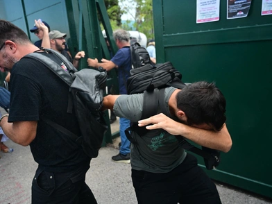 Διαδηλωτές επιχείρησαν να μπουν στον προαύλιο χώρο του υπουργείου όταν αστυνομικοί έριξαν δακρυγόνα, ψέκασαν απευθείας διαδηλωτές και τους χτύπησαν με γκλοπ, όπως φαίνεται και σε βίντεο του Orange Press.