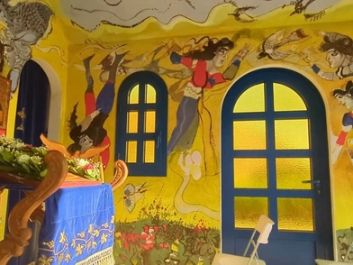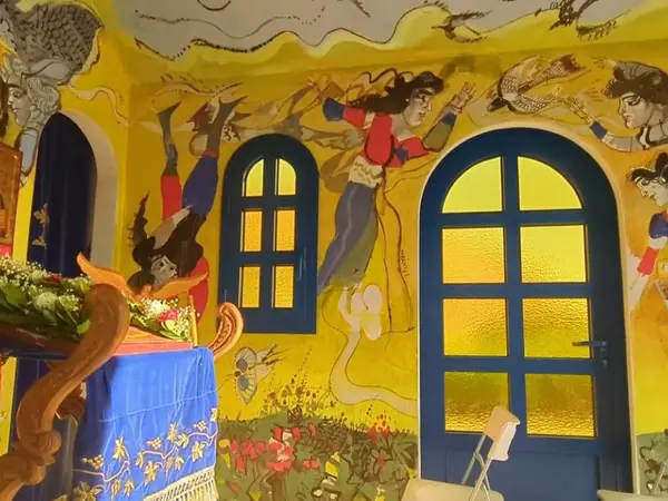 Το εκκλησάκι συμπληρώνει φέτος είκοσι χρόνια από τη δημιουργία του, από τότε που ο Εξωραϊστικός Σύλλογος της περιοχής επέτρεψε στον διάσημο Έλληνα ζωγράφο να το στολίσει με το πινέλο του.