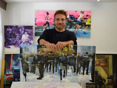 «Πέρυσι είχα κάνει το πορτραίτο Θεόδωρου Αγγελόπουλου στο ΑΠΘ το οποίο σβήστηκε από το ίδιο το ΑΠΘ. Είχε γίνει σάλος. Ήταν πολύ πετυχημένο πορτραίτο. Αυτό ήταν το πρώτο σοκ», σημειώνει.