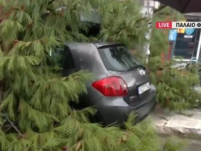 Από θαύμα σώθηκε οδηγός αυτοκινήτου στο Παλαιό Φάληρο όταν κατά τη διάρκεια της κακοκαιρίας ξεριζώθηκε δέντρο και έπεσε πάνω στο όχημά του.