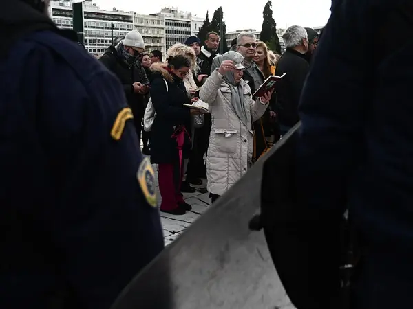 Κόσμος με σταυρούς, εικόνες του Χριστού και διαβάζοντας το «Ψαλτήριο» μπροστά από τη Βουλή και τις παραταγμένες δυνάμεις της αστυνομίας, διαμαρτυρήθηκαν για το κυβερνητικό νομοσχέδιο.