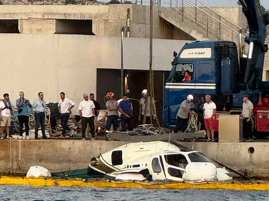 Με ειδικό γερανό, το ελικόπτερο μεταφέρθηκε από το νερό σε φορτηγό, με τις Αρχές να ερευνούν και να προσπαθούν να καταλήξουν σε ένα συμπέρασμα για το πώς έγινε το ατύχημα στη Μαρίνα Βουλιαγμένης.
