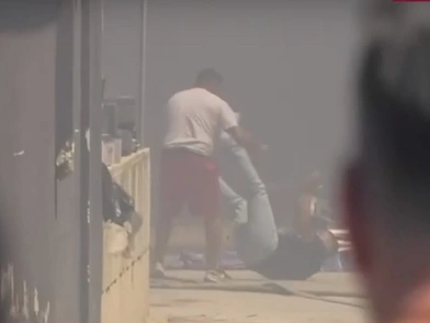Την ίδια στιγμή άλλα άτομα φαίνονται να προσπαθούν να κατασβήσουν τις φλόγες με κουβάδες γεμάτους νερό, ενώ τρίτοι σπεύδουν στο σημείο για να σταματήσουν την άγρια συμπλοκή.