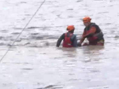 Ο πυροσβέστης προσέγγισε τον άνδρα, του φόρεσε σωσίβιο και κράνος και με τη βοήθεια συρματόσχοινου τον τράβηξαν σε ασφαλές σημείο.