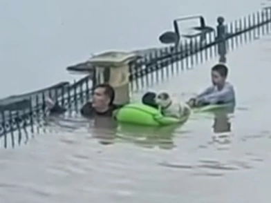 Συγκλονίζει βίντεο που ήρθε στη δημοσιότητα από τον Παλαμά και δείχνει έναν άνδρα να μεταφέρει δύο παιδιά και ένα σκυλί πάνω σε φουσκωτό στρώμα θαλάσσης, μέσα στο πλημμυρισμένο τοπίο, προκειμένου να καταφέρουν να φτάσουν σε ασφαλές σημείο.