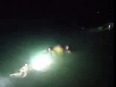 Οι αστυνομικοί, αψηφώντας τον κίνδυνο βούτηξαν στη θάλασσα, κολύμπησαν μέχρι το άτομο και διαπίστωσαν ότι είχε εγκλωβιστεί με παραγάδι στα πόδια, καθιστώντας αδύνατο να απομακρυνθεί κολυμπώντας.