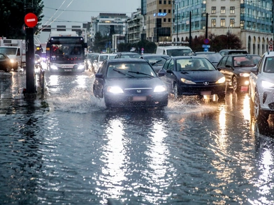 Κακοκαιρία: Λεωφόροι έγιναν «ποτάμια»