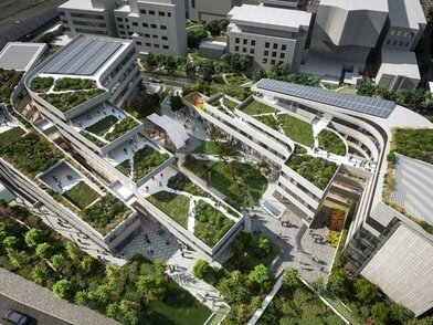 Από το δεύτερο επίπεδο τα κτίρια υψώνονται με σταδιακή υποχώρηση μέχρι το τελευταίο επίπεδο δημιουργώντας αλλεπάλληλα φυτεμένα δώματα. Στους υπέργειους χώρους του κτιρίου θα εφαρμοστεί βιοκλιματικός σχεδιασμός με σκοπό την εξασφάλιση συνθηκών θερμικής και οπτικής άνεσης με την ελάχιστη δυνατή κατανάλωση συμβατικής ενέργειας.