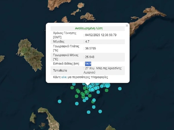 Δύο ισχυροί σεισμοί καταγράφηκαν στα ανοιχτά της Αμοργού, ένας ισχύος 4,7 ρίχτερ και νωρίτερα 4,2, μέσα σε μόλις 20 λεπτά.