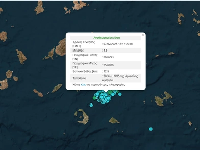 Ο δεύτερος σεισμός των 4,5 βαθμών της κλίμακας Ρίχτερ σημειώθηκε 20 χιλιόμετρα νότια - νοτιοδυτικά της Αρκεσίνης Αμοργού, ενώ το εστιακό βάθος υπολογίζεται σε 12,5 χιλιόμετρα.