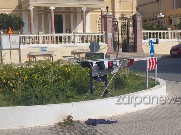 Άγνωστος αποφάσισε να απλώσει τη μπουγάδα του πάνω σε κυκλικό κόμβο στα Χανιά. Το περιστατικό συνέβη στην Ευαγγελίστρια και προκάλεσε έκπληξη σε όσους περνούσαν από το σημείο.
