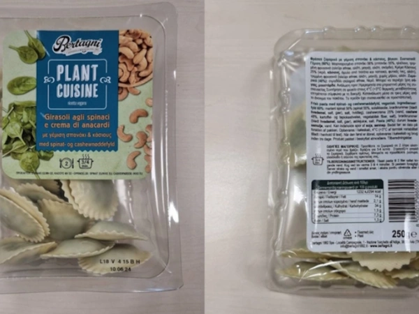 Συγκεκριμένα πρόκειται για το προϊόν με ξενόγλωσση ονομασία πώλησης «Girasoli vegani spinaci e anacardi 250x6» και εμπορική ονομασία «Bertagni Plant Cuisine».