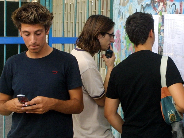 Κι ενώ στεκόμασατν έξω από το κυλικείο, ένα αγόρι που βγήκε από το μάθημα για να πάει στις τουαλέτες μάς είπε πως: «Τώρα αυτή τη στιγμή είναι σίγουρα μέσα στην τάξη 5-6 άτομα με το κινητό στο χέρι. Κάνουν σταυροπόδι και το κρύβουν τον καθηγητή».