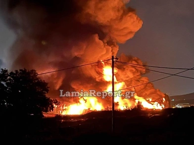 Η φωτιά ξέσπασε το βράδυ της Κυριακής (19/5) και παρά την τεράστια κινητοποίηση των δυνάμεων της Πυροσβεστικής με συνολικά 18 οχήματα και ειδικό βραχιονοφόρο, 40 πυροσβέστες, αλλά και υδροφόρες του Δήμου Λαμιέων, η καταστροφή είναι τεράστια.
