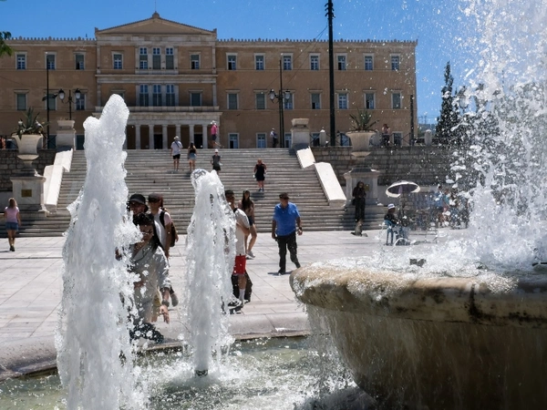 Το ειδικό περίπτερο που έστησε ο Δήμος Αθηναίων στην πλατεία Συντάγματος εξακολουθεί να παρέχει μπουκάλια με κρύο νερό στους διερχόμενους και τους επισκέπτες της πόλης.