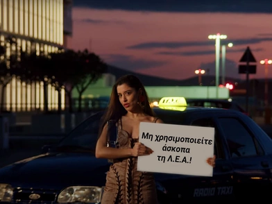 Συγκεκριμένα, η ταμπέλα που κρατάει η Σάττι «γράφει»: «Μη χρησιμοποιείτε άσκοπα τη Λ.Ε.Α».