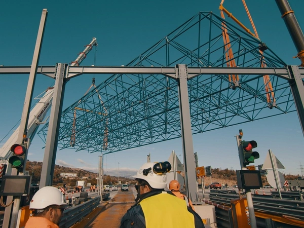 Εντυπωσιακές εικόνες από την αφαίρεση του παλιού στεγάστρου στο μετωπικό σταθμό διοδίων της Ελευσίνας, έδωσε στη δημοσιότητα η Ολυμπίας Οδός. Το παλιό στέγαστρο αφαιρείται ανά τμήματα με τη βοήθεια μεγάλων γερανών, προκειμένου να τοποθετηθεί νέο.