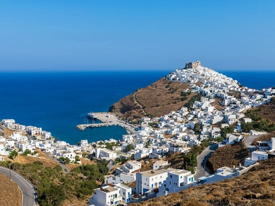 Αυτό που σου μένει από τη γραφική Αστυπάλαια είναι η αντίθεση μεταξύ του μουντού καφέ του τοπίου, και του αναζωογονητικού λευκού της χώρας. Οι σειρές από ροζ ανεμόμυλους που στέκουν σαν αρχαίοι φύλακες, και το επιβλητικό, και εξαιρετικά διατηρημένο Ενετικό κάστρο της ακρόπολής της.